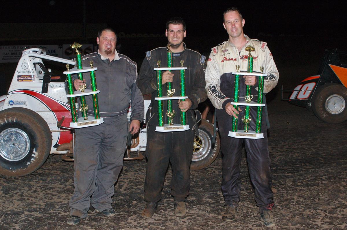 Finishing in the runner-up spot was Rob Lindsey of Wilsonville in his Maxline Custom Cases/Speedmart Inc./Competition Suspensions Inc. #23 XXX after starting tenth and eleventh starting Steve Hix from Ventura, California would place his No Limit Powdercoating/Car Quest Auto Parts #57H Spike in third. Colin Baker would end his night in fourth followed by his teammate Josh Pelkey of Peoria, Arizona in fifth in the Huddle Automotive Repair/Oregon West RV/Steelhouse Metal Roofing Supply #71 XXX for car owner Hedge Carter.