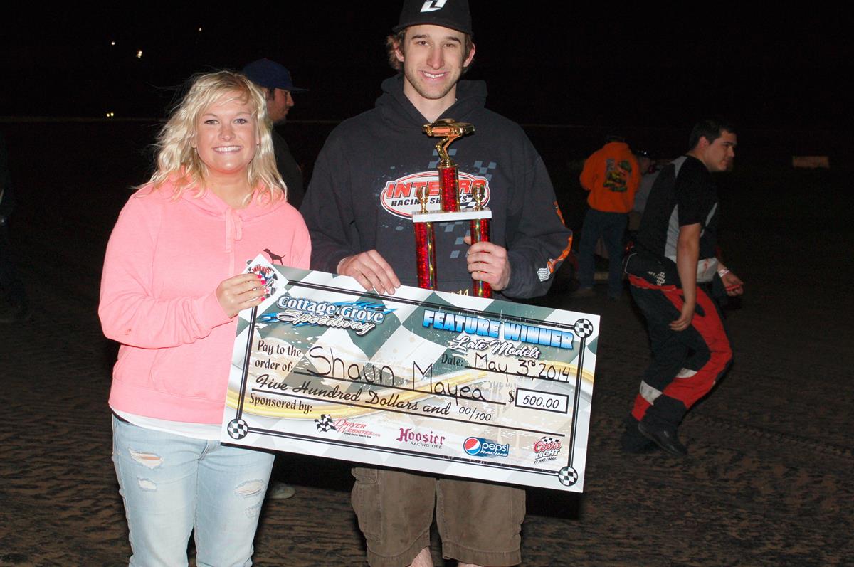 Luckman would restart as the leader and would hold down the position only to be overtaken by Shaun Mayea on lap twenty-two. Mayea would go on and win the feature to pick up his second straight Late Model victory at Cottage Grove Speedway.
