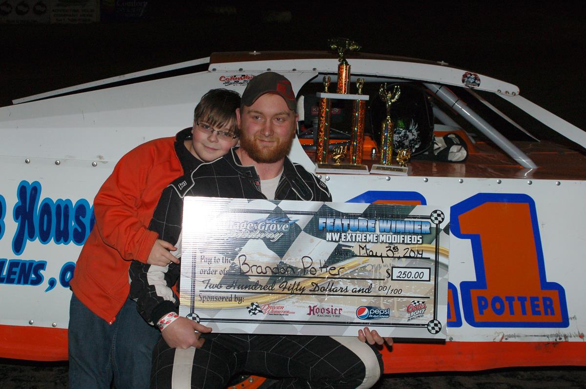 In the debut of the Northwest Extreme Modifieds there would be a handful of entries make the trip. Brandon Potter of St. Helens would lead the entire distance in his first time ever driving the Hope House #11 Pro. Potter was a late arrival but managed to make it just in time for the heat race earlier in the evening. Scott Akin from Crow was the only other entry to make it to the race and he would finish in second in his Akin Racing #54 Monster entry. Brandon Potter was also the winner in heat race action.