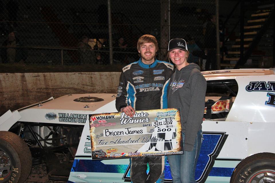 John Campos, of Keizer, got second, followed by Albany’s Dustin Cady in third. Collen Winebarger wound up fourth over fifth finishing Aaron Sheelar, from Springfield. Bricen James was fast time of the night, Winebarger won the Dot’s Trophy Shop Trophy Dash, heat race winners were Winebarger, Campos, Cady, and James while Eugene’s Tony Bloom finished first in the consolation feature.