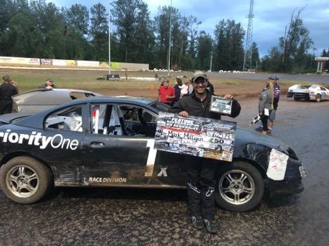 Joe Maricle was quite fast in the first few laps of the main event. The Eugene driver took over the lead in the opening lap and retained the position until lap four. Hornet newcomer Mark Milligan made the move around Maricle, on lap five, to obtain the top spot. He held on for the rest of the distance to secure his first career win at Cottage Grove Speedway.