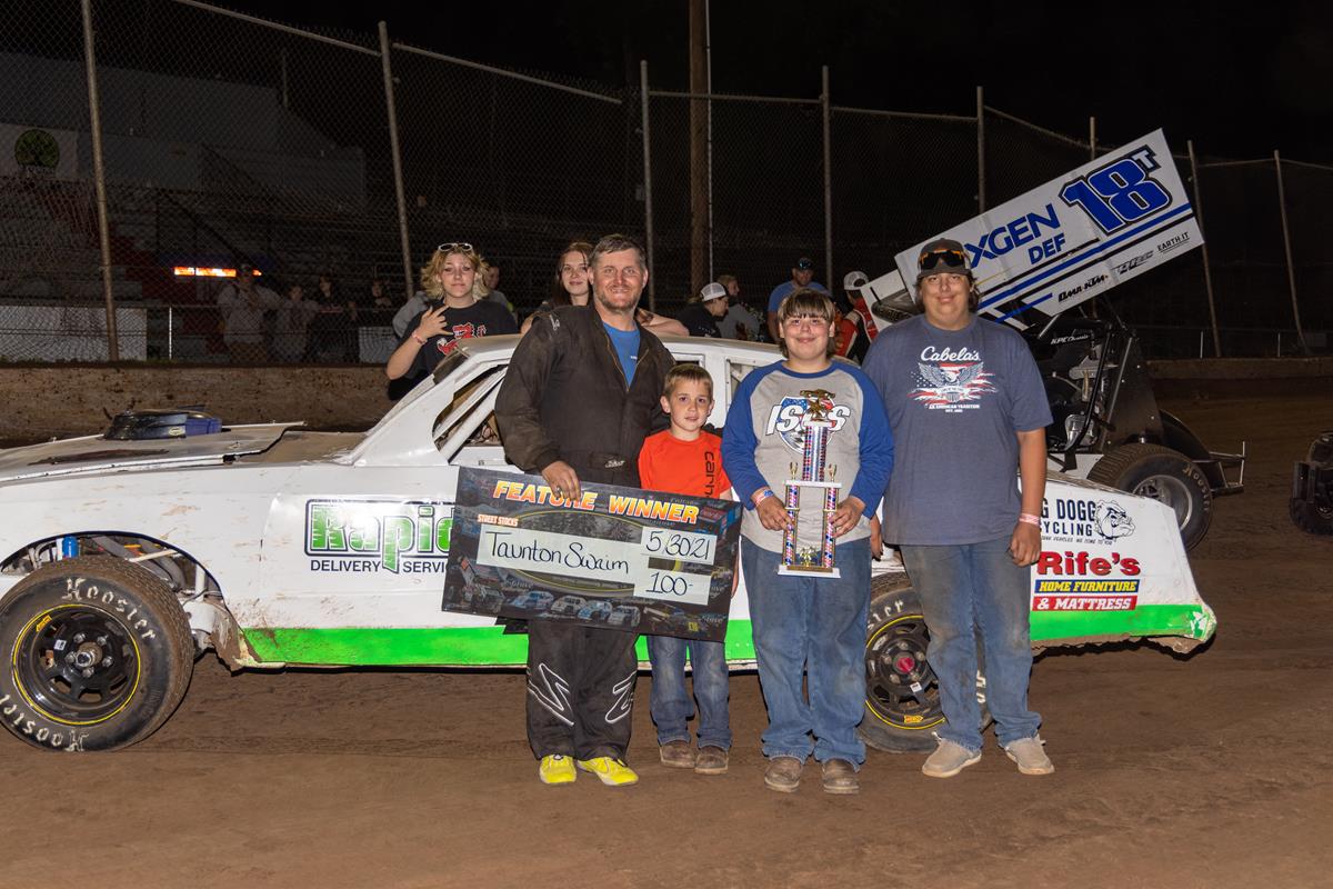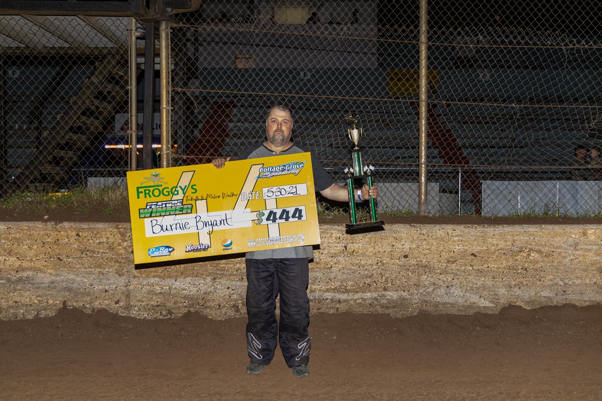 The IMCA Sport Compacts were the headliner of the night. The evening was specially reserved for the rescheduled Froggy 44 Tribute To Mel Walker. The forty-four-lap affair started with Tiffany Towns, from Cottage Grove, leading the opening lap. Burnie Bryant maneuvered his way past Towns by the completion of the second circuit.