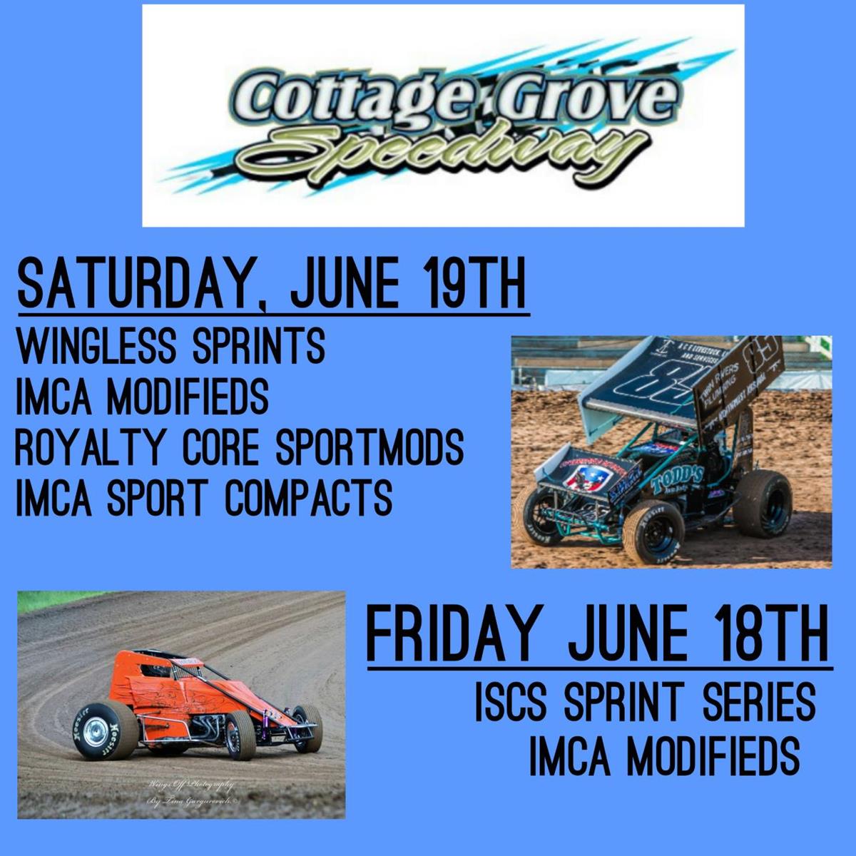 2 NIGHTS OF RACING ACTION JUNE 18TH & 19TH AT COTTAGE GROVE SPEEDWAY!!