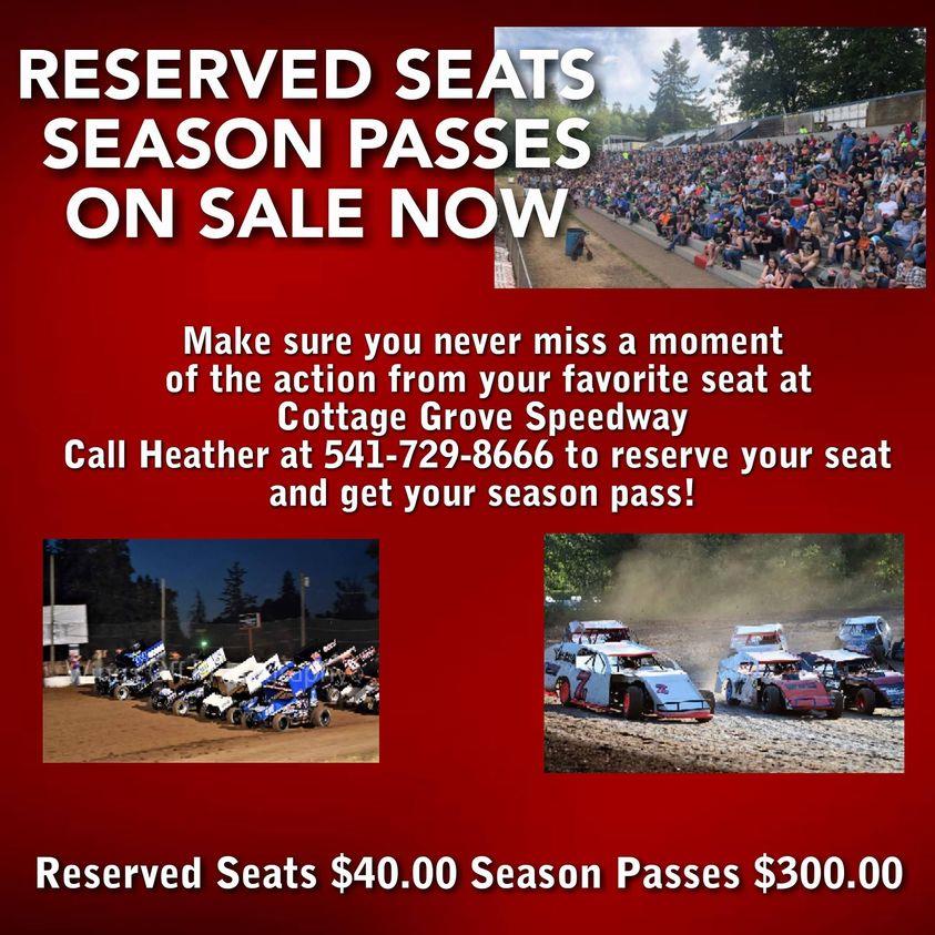 To order reserved seats or season passes please call the Cottage Grove Speedway office at 541-942-7561.