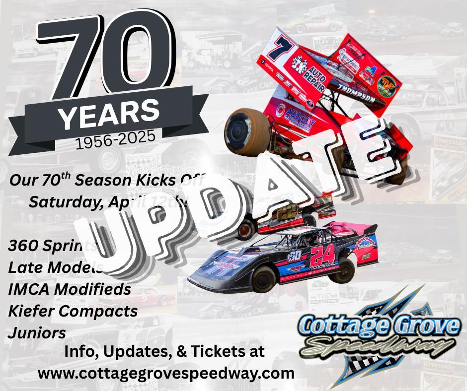 We know you have all been very patiently waiting for an update on the status of Saturday's race here at Cottage Grove Speedway and unfortunately, we don't have a great one for you just yet.