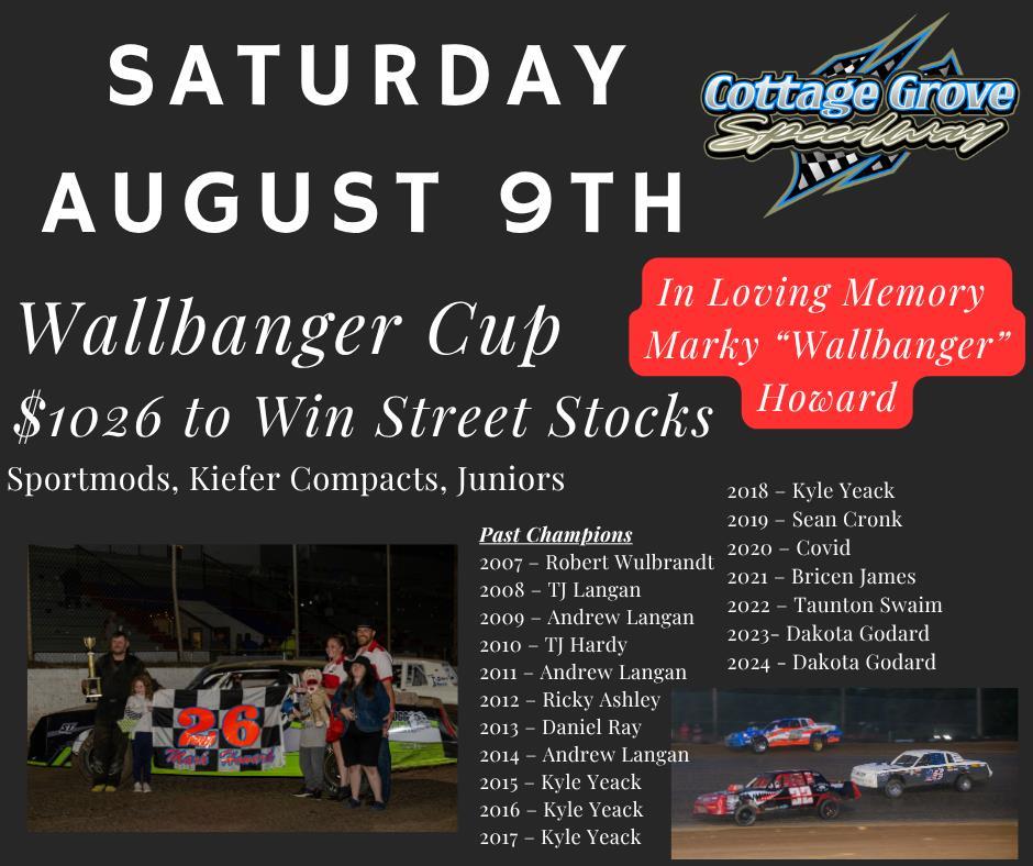 In addition to being a HUGE race for Street Stocks we also have Sportmods, Kiefer Compacts, and Juniors on the schedule which will make for a very entertaining night here at Cottage Grove Speedway!
