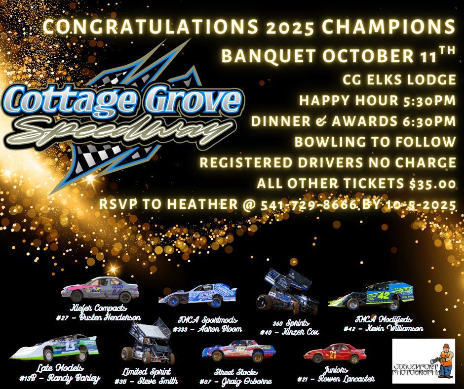 COTTAGE GROVE SPEEDWAY BANQUET INFO!!
